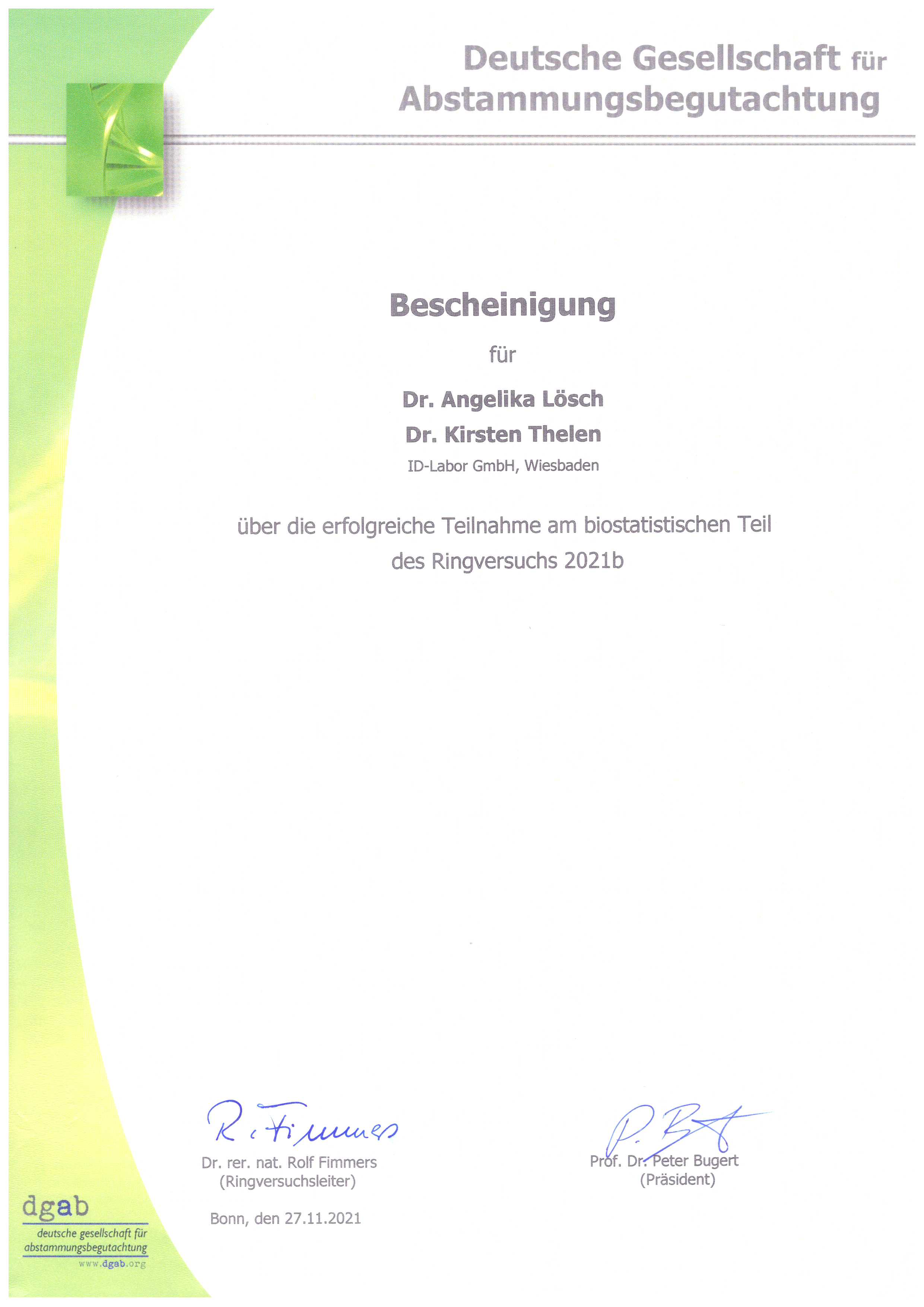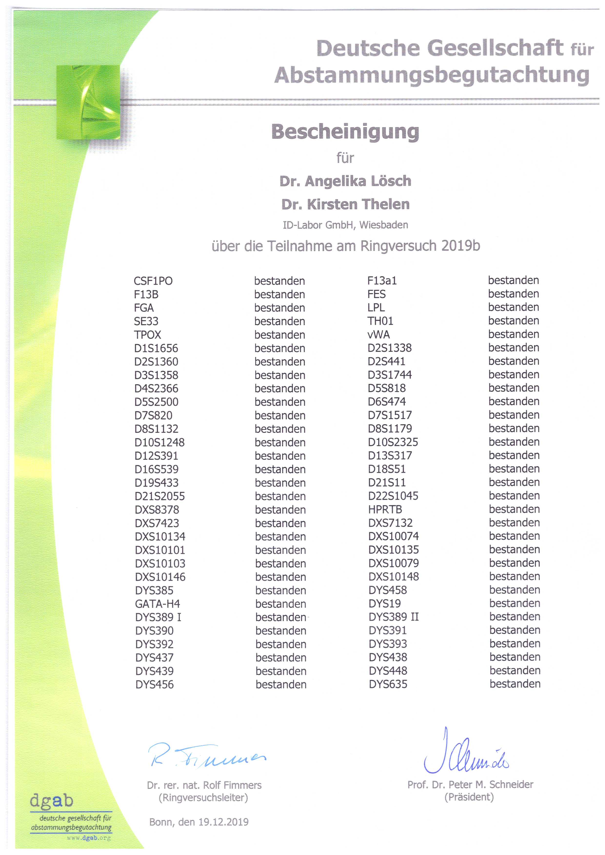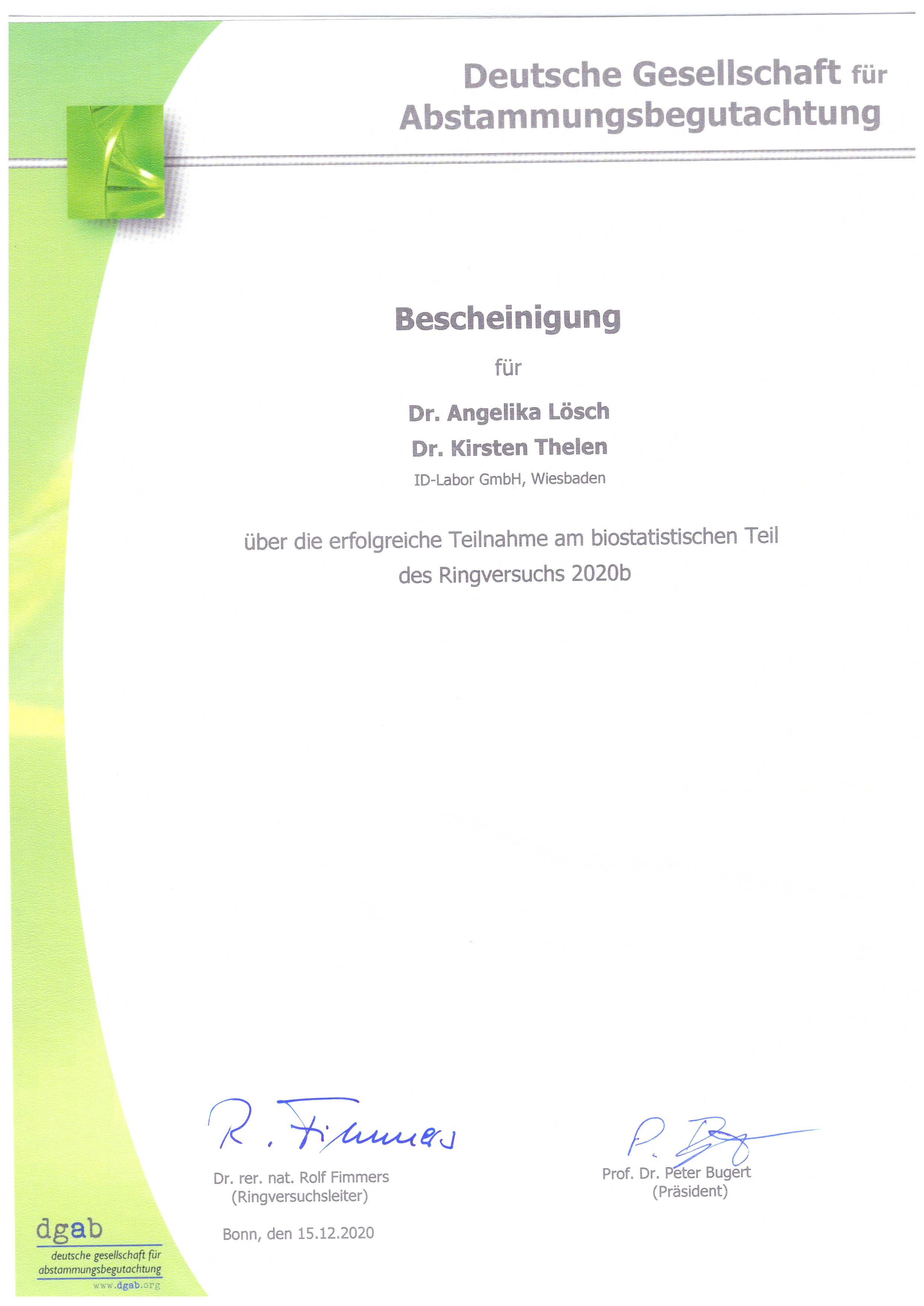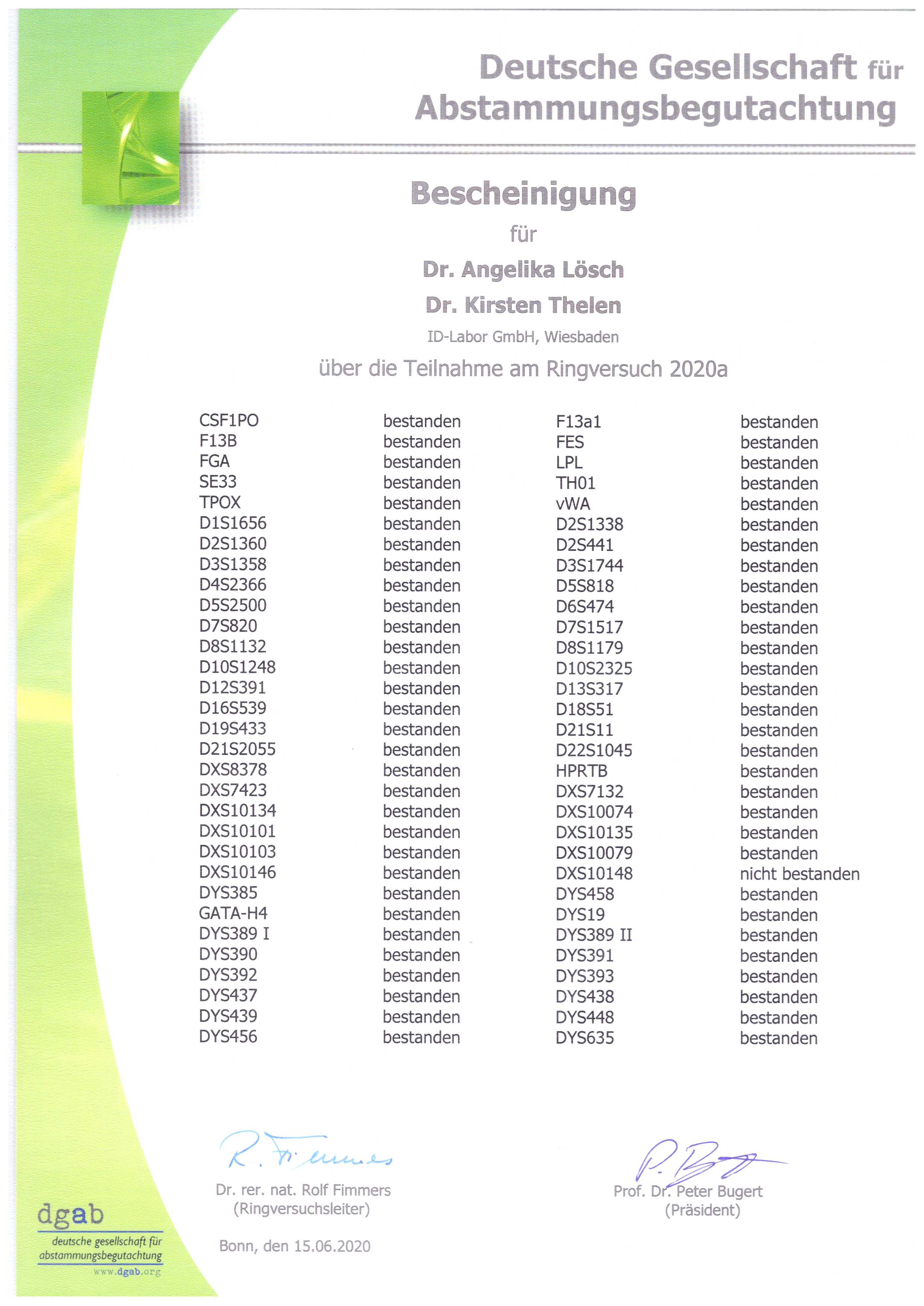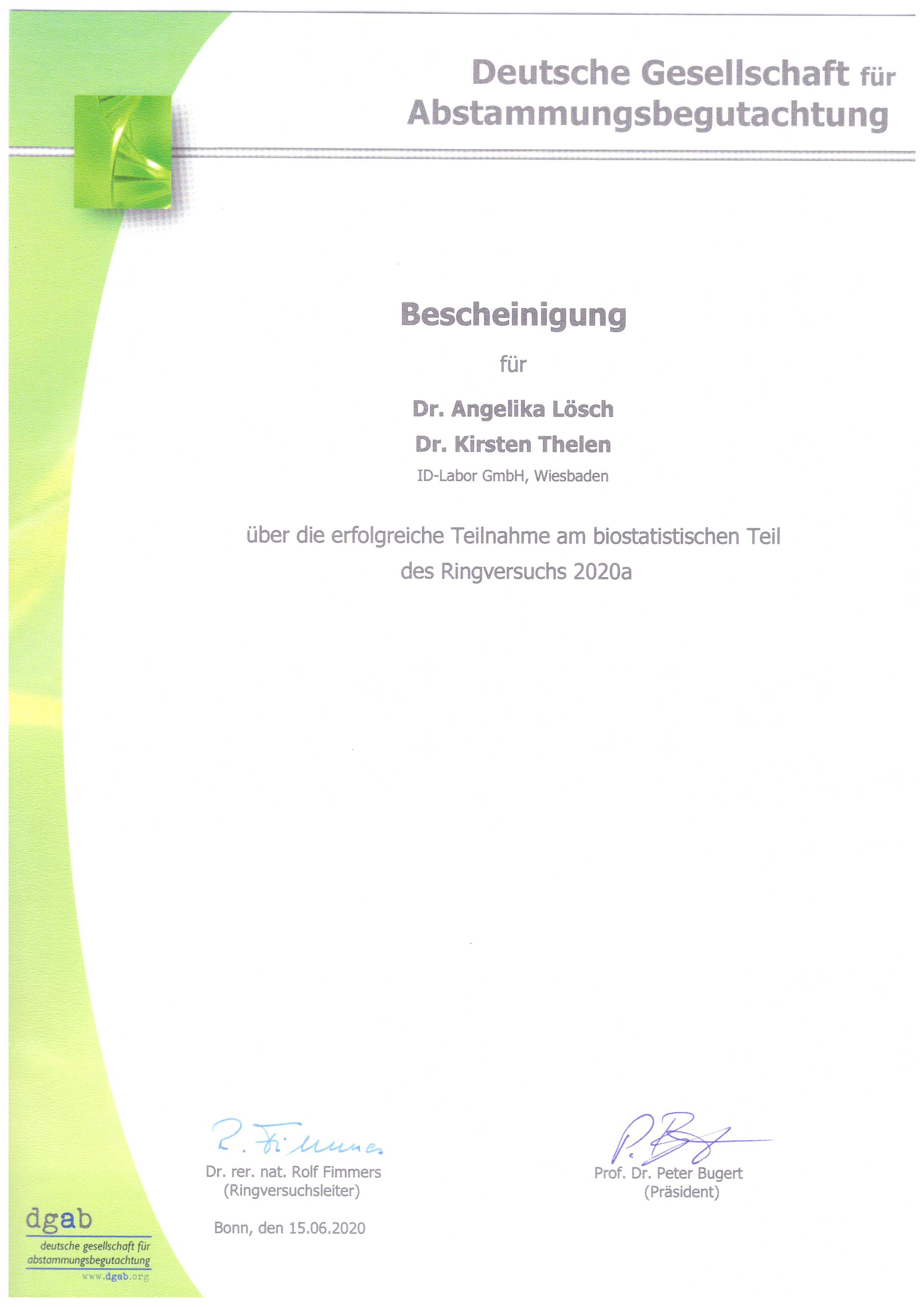 Mit Wirkung vom 09. Mai 2017 sind Frau Dr. Angelika Lösch und Frau Dr. Kirsten Thelen von der IHK Wiesbaden zu öffentlich bestellten und vereidigten Sachverständigen für genetische Abstammungsbegutachtung ernannt worden. Das bedeutet, dass sie gegenüber einer öffentlich-rechtlichen Institution Ihre Vertrauenswürdigkeit, Unabhängigkeit, Objektivität und besondere Sachkunde nachgewiesen haben.
