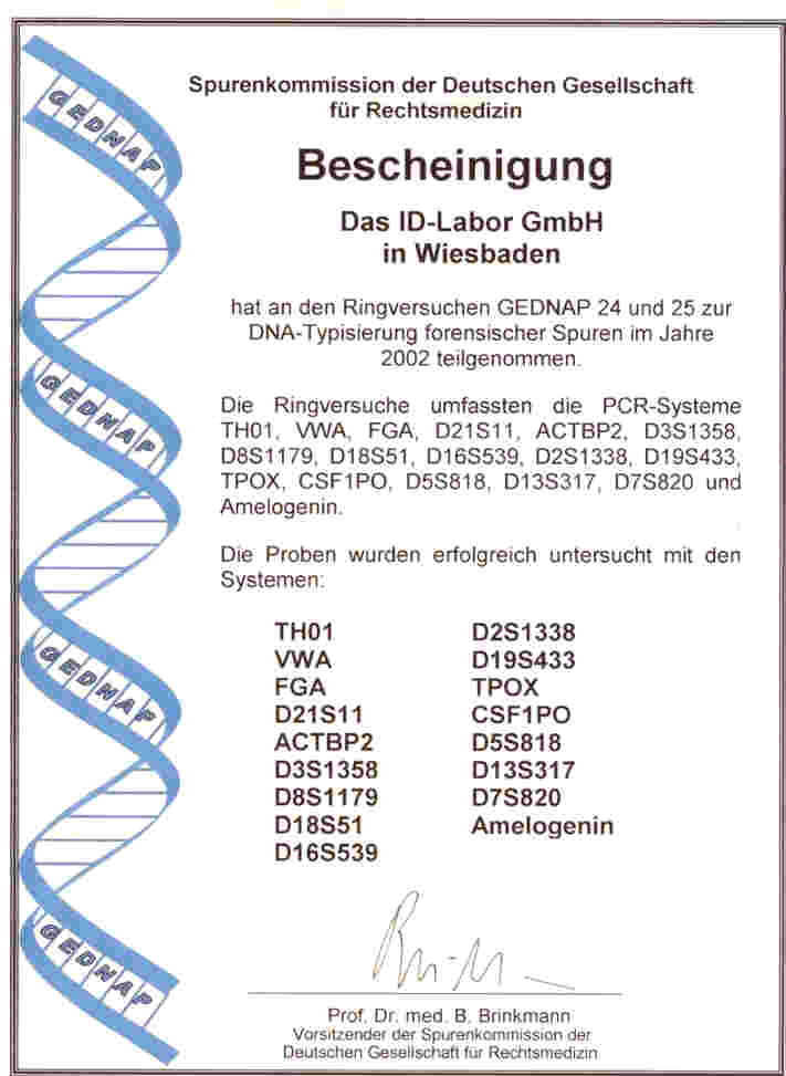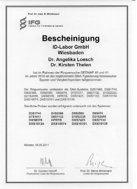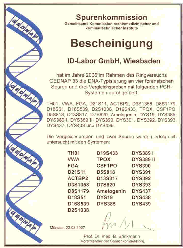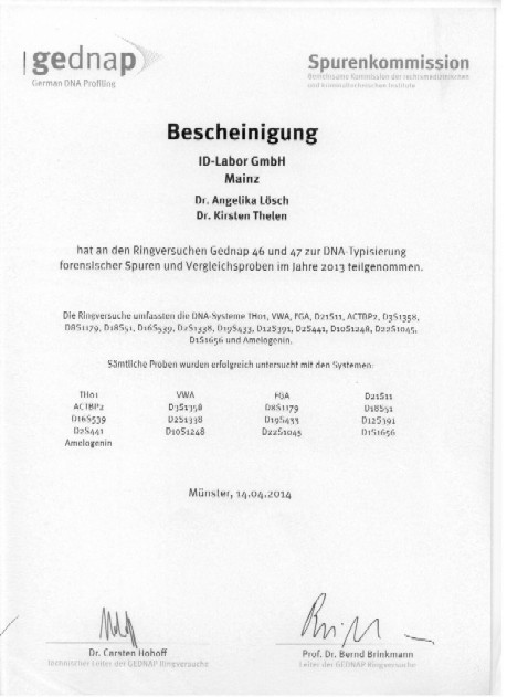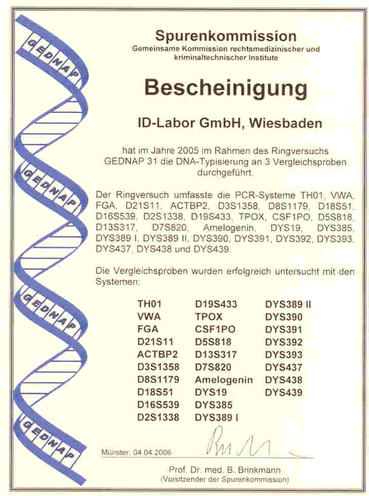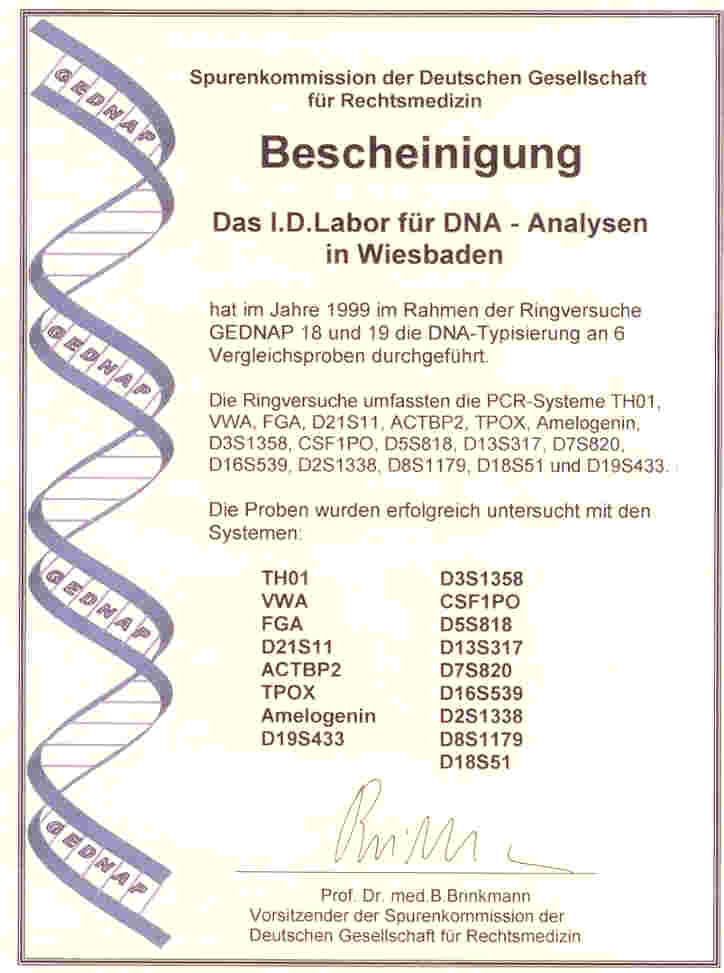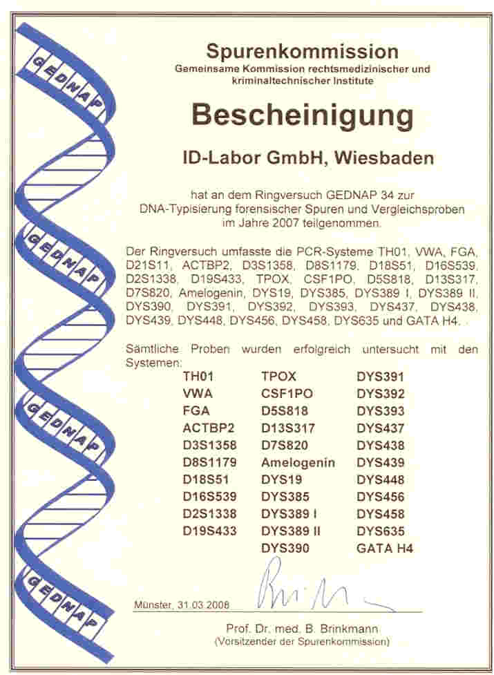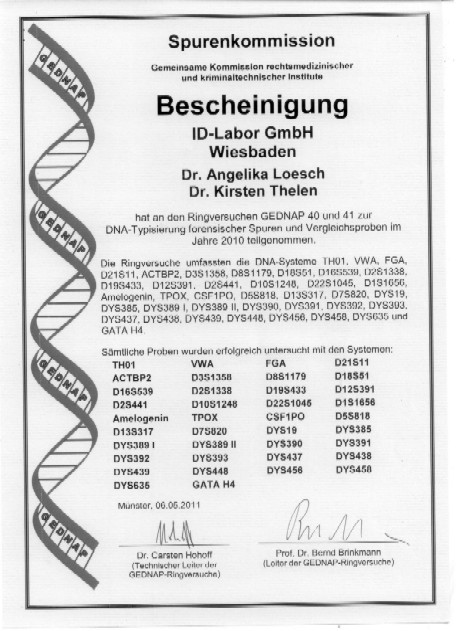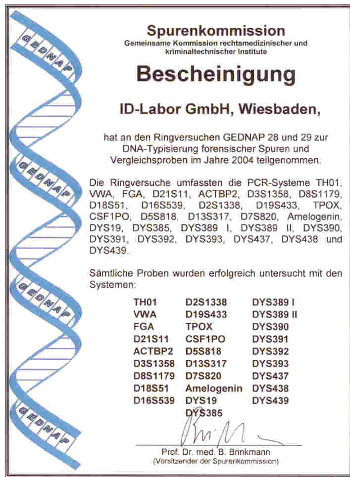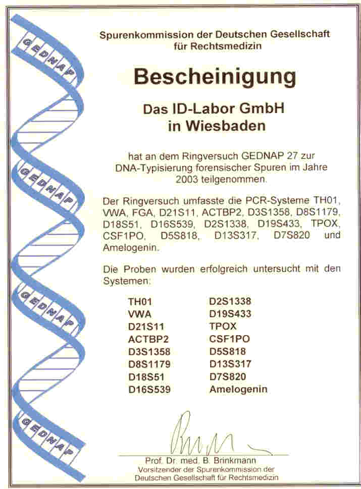 Gehe zu: Vereidigung durch die IHK Wiesbaden / Akkreditierung nach ISO 17025 / DGAB-Zertifikate / GEDNAP-Zertifikate