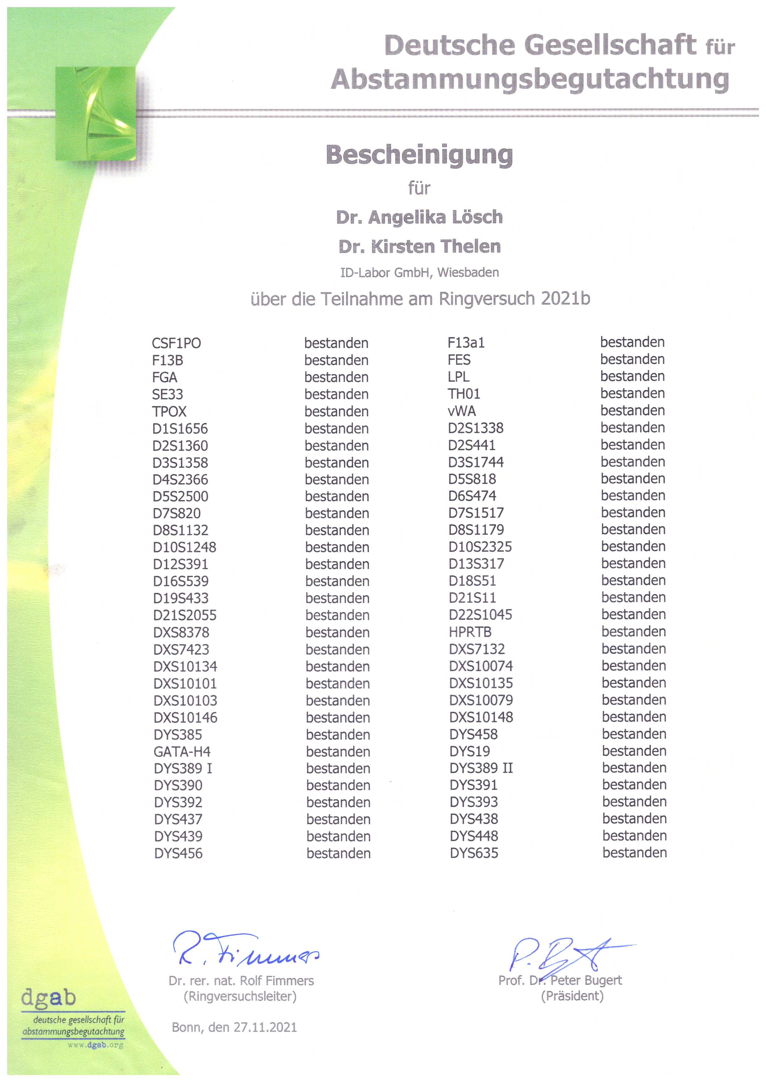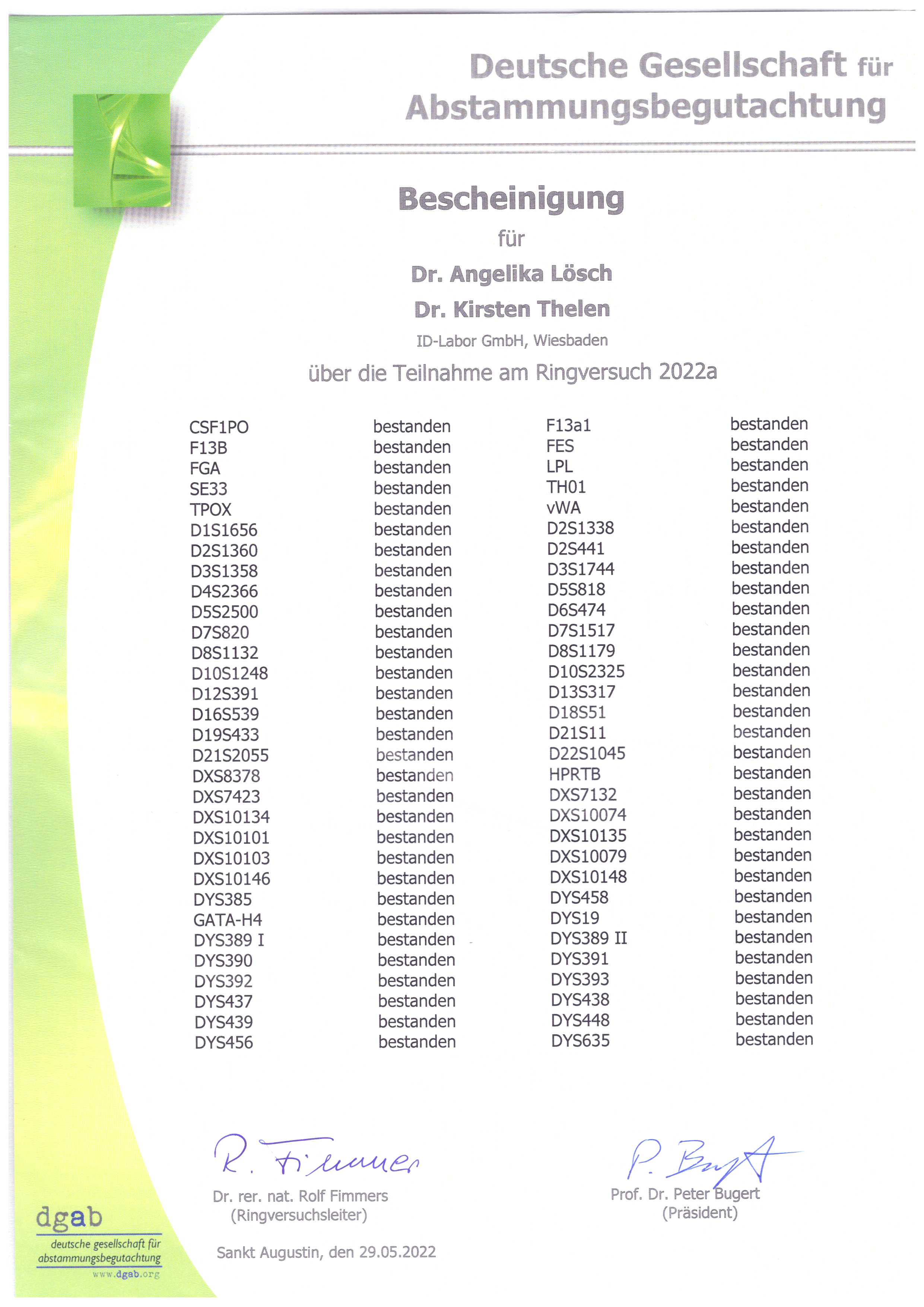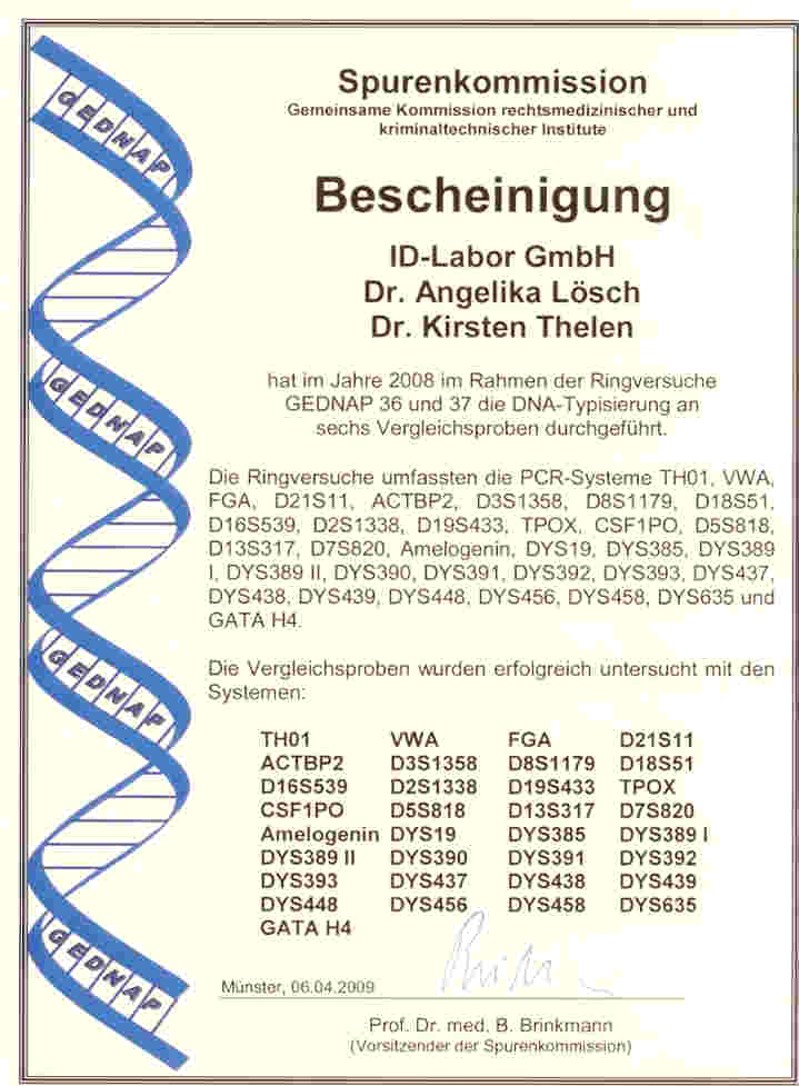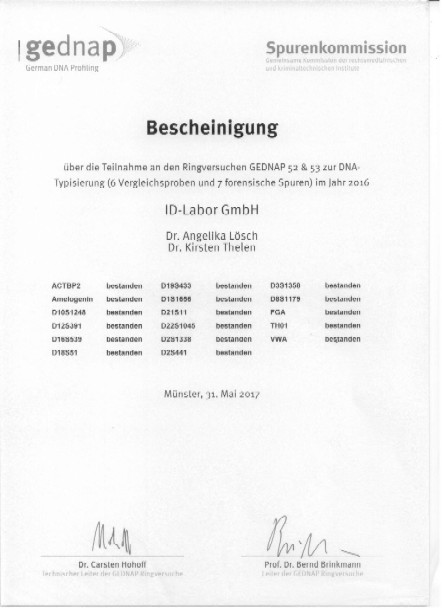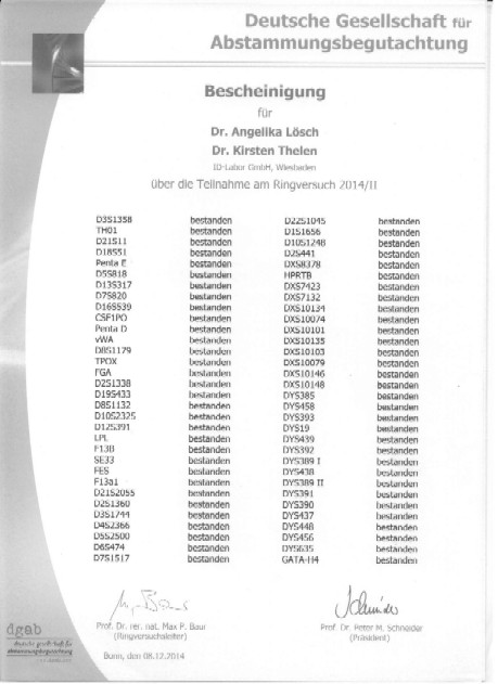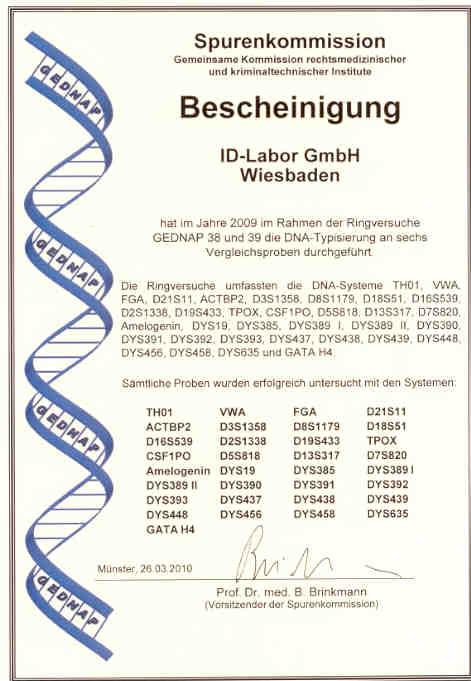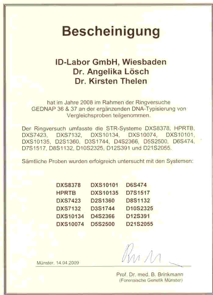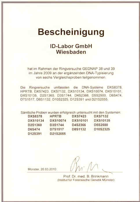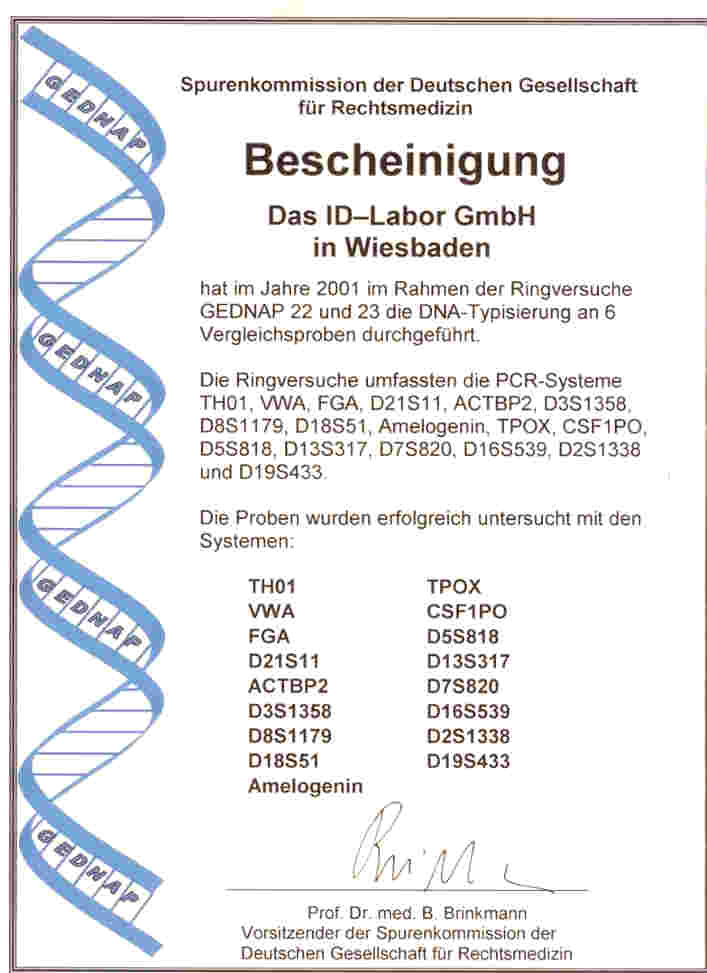 Gehe zu: Vereidigung durch die IHK Wiesbaden / Akkreditierung nach ISO 17025 / DGAB-Zertifikate / GEDNAP-Zertifikate